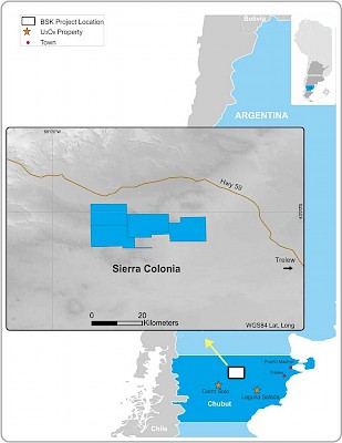 The Sierra Colonia project includes 100% ownership of more than 28,470 hectares in the central-eastern part of Chubut Province. It is road accessible year round, at low elevation, with low relief, in an area of semi-arid climate.